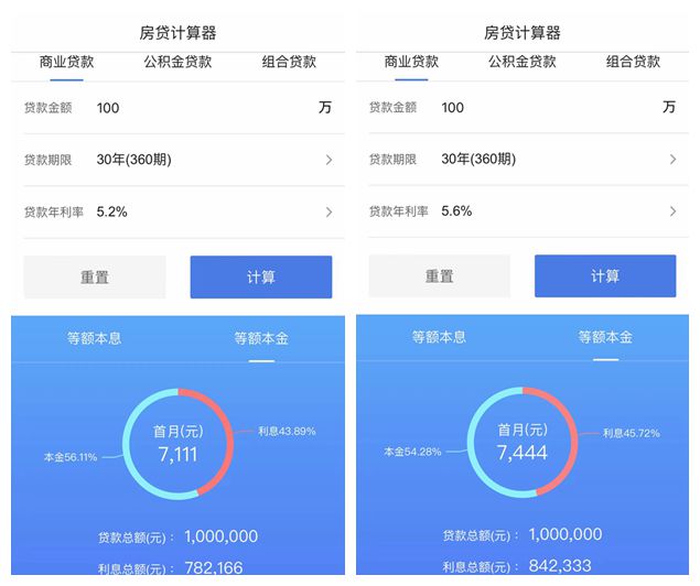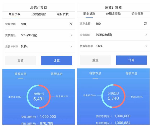 以个人首套商品住房,纯商贷100万,分30年期还款为例。