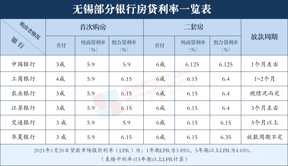 2021年首月LPR公布,小编及时致电无锡6家主流银行,跟进了无锡个贷的最新情况。