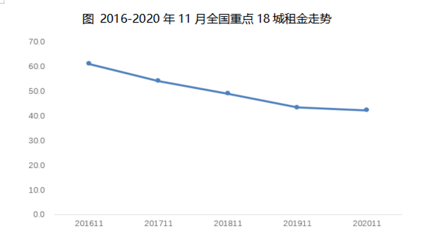 机构数据显示,截至11月底,受监测的全国重点城市租金均价创近两年新低,11月租金更是创近5年单月同期新低。