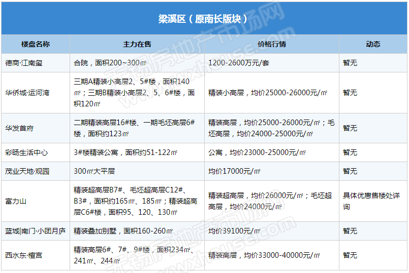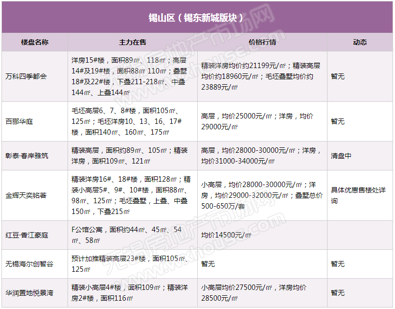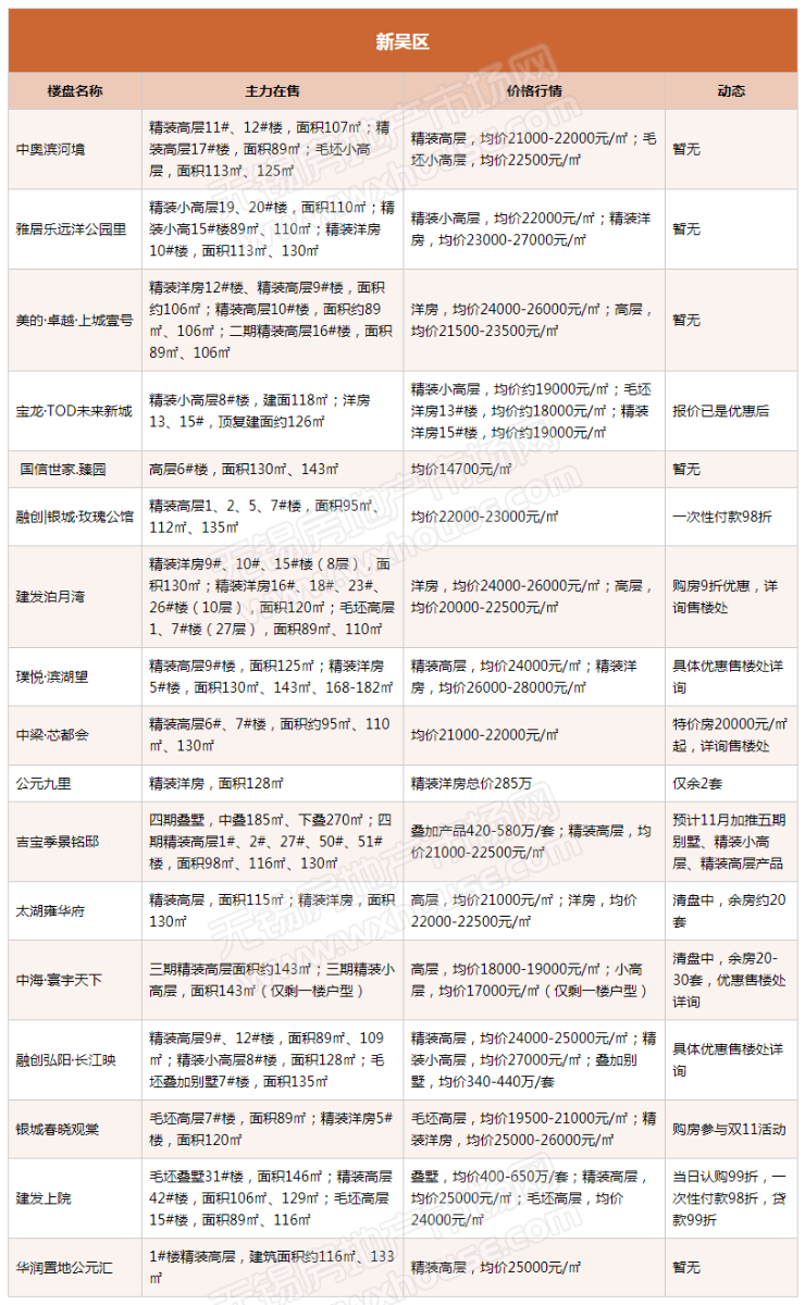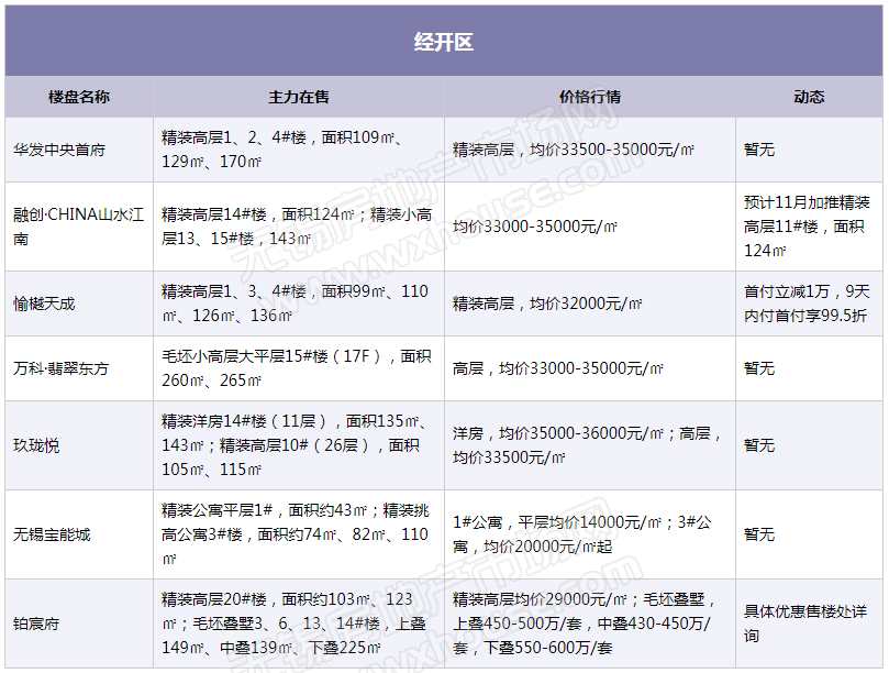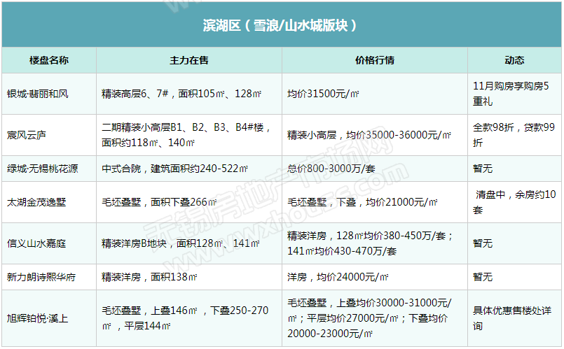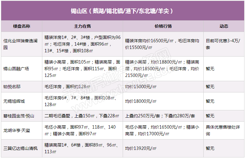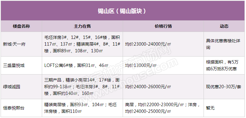 11月锡城主流在售楼盘最新报价及最全在售信息