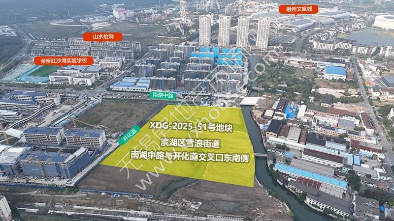 南湖中路与开化道交叉口东南侧地块(XDG-2025-51号)位于滨湖区南湖中路与开化道交叉口东南侧,占地面积56377.5㎡,二类城镇住宅用地,容积率>1.0且≤1.5,起拍总价107546万元,折合楼面单价12717元/㎡。