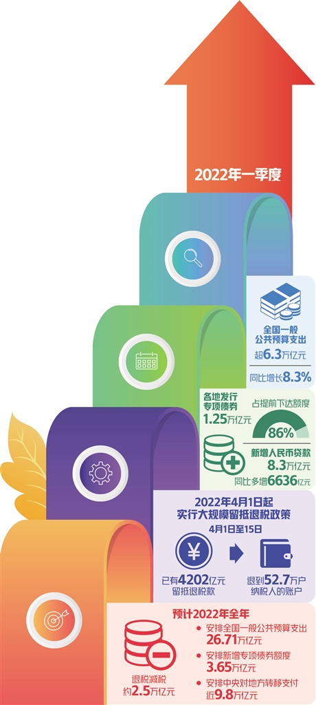 2021年底召开的中央经济工作会议,对2022年宏观政策进行了重要部署,特别强调“各方面要积极推出有利于经济稳定的政策,政策发力适当靠前”。在各种不利因素交错的复杂局面中,今年一季度经济实现平稳开局,国内生产总值同比增长4.8%,助推力正来自一系列宏观政策的有效实施。