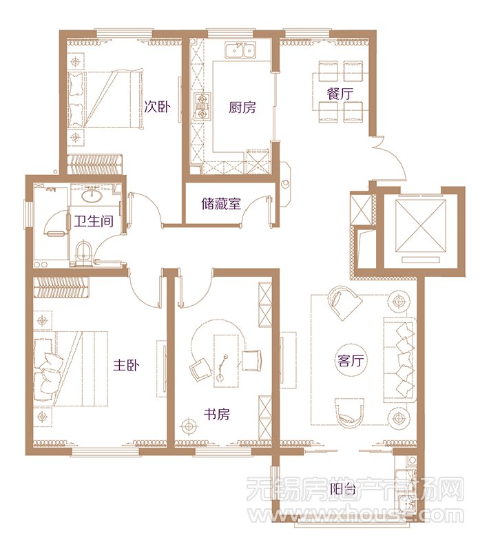 3室2厅1卫 建筑面积约:132.0㎡B1户型