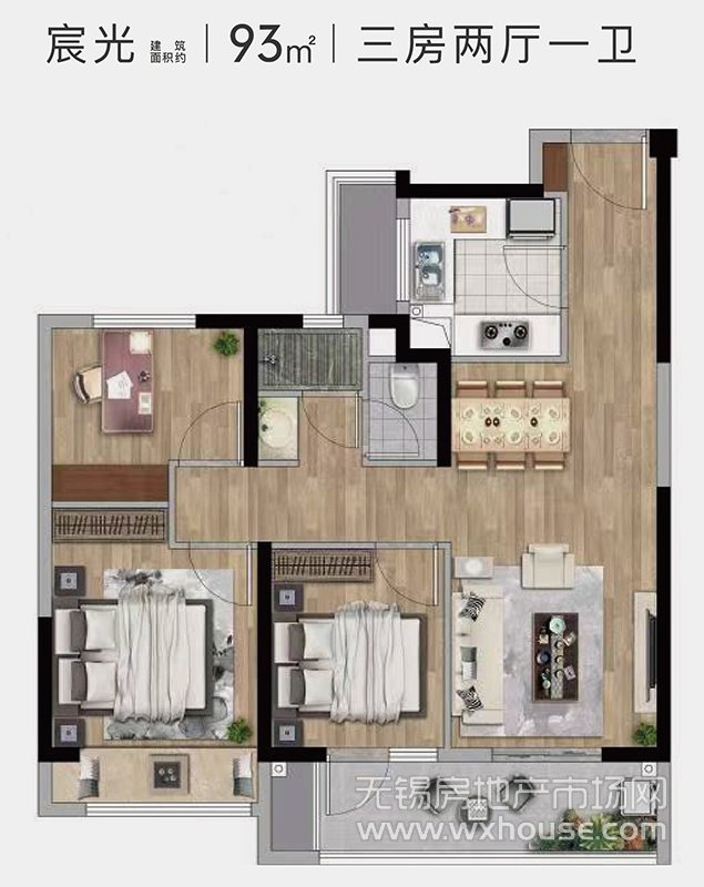 3室2厅1卫 建筑面积约:93.0㎡宸光户型