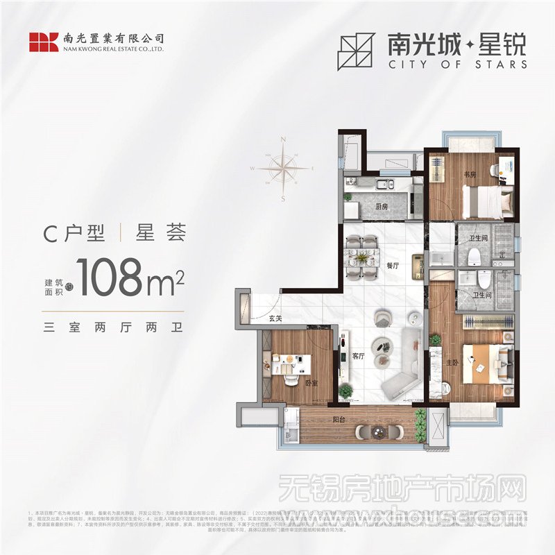 3室2厅2卫 建筑面积约:108.0㎡C户型星荟