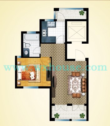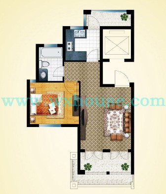 1室1厅1卫 建筑面积约:60.0㎡圣芭芭拉2期户型图6