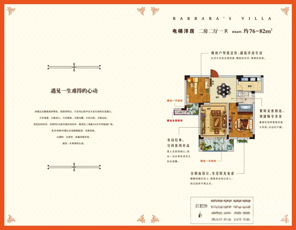 2室2厅1卫 建筑面积约:74.0㎡圣芭芭拉B-02户型
