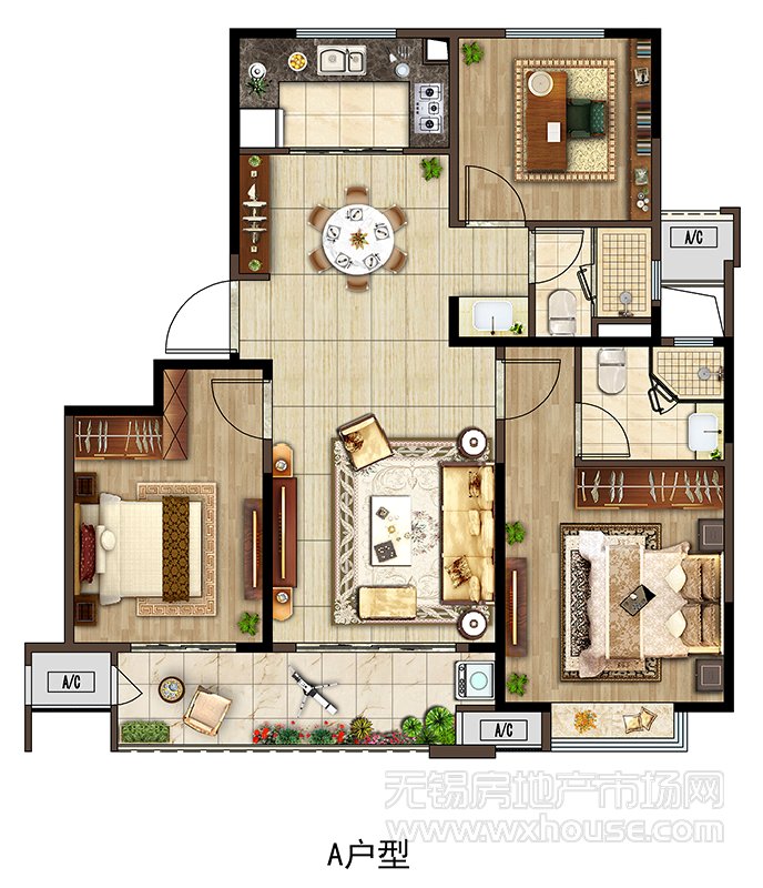 3室2厅2卫 建筑面积约:97.0㎡A1户型