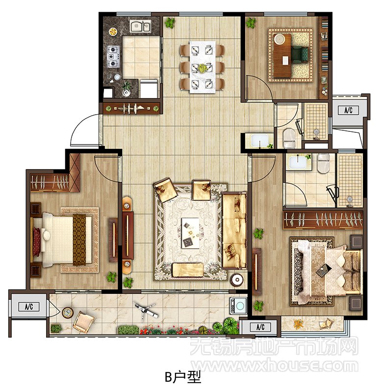 3室2厅2卫 建筑面积约:117.0㎡B户型