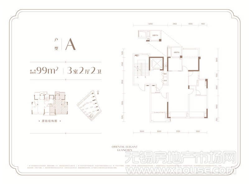 3室2厅2卫 建筑面积约:99.0㎡A户型