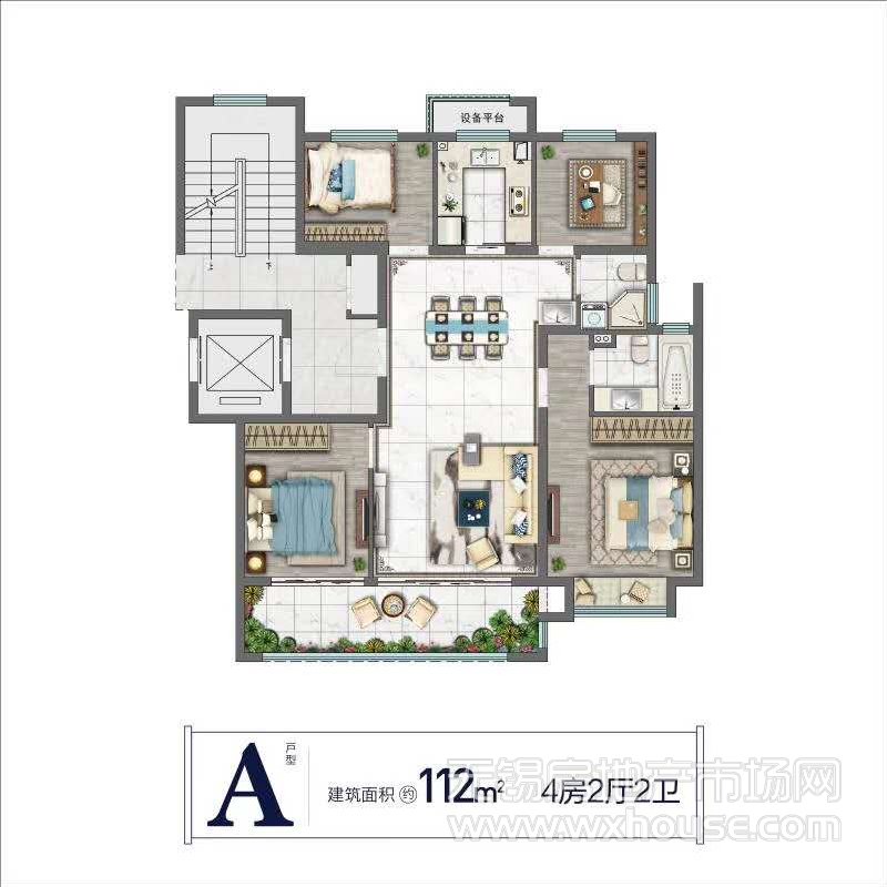 4室2厅2卫 建筑面积约:112.0㎡A户型