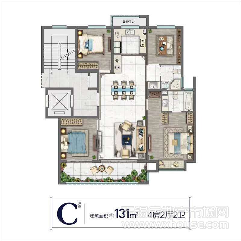4室2厅2卫 建筑面积约:131.0㎡C户型