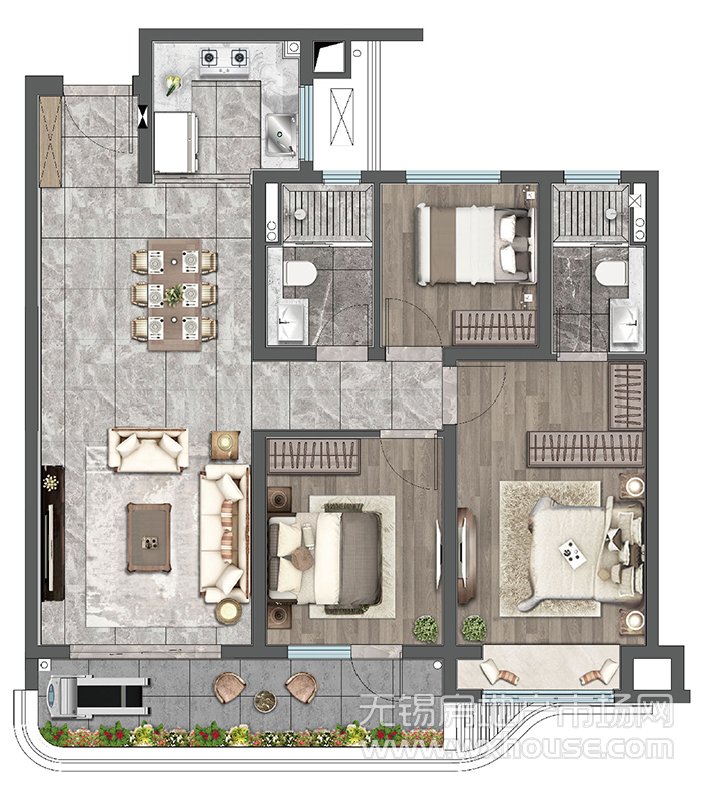 3室2厅2卫 建筑面积约:116.0㎡高层D户型