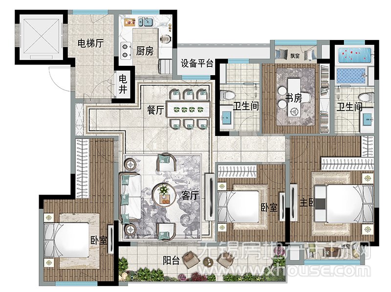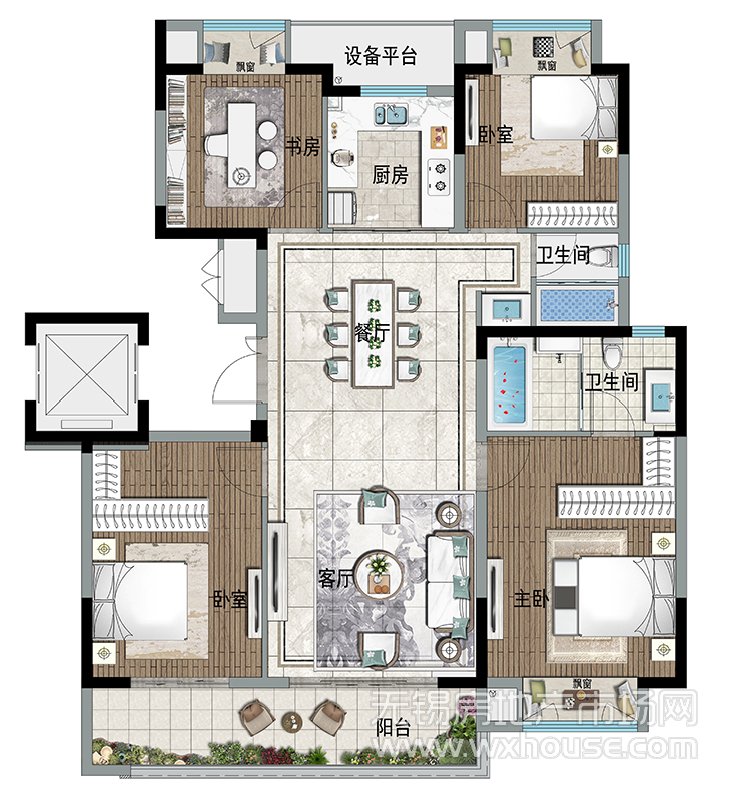 4室2厅2卫 建筑面积约:125.0㎡洋房125㎡户型