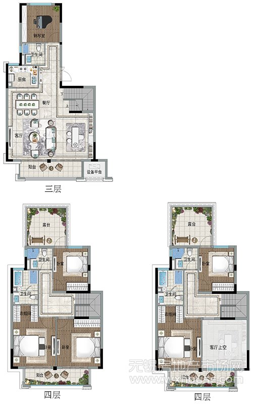 4室4厅3卫 建筑面积约:257.0㎡下叠户型