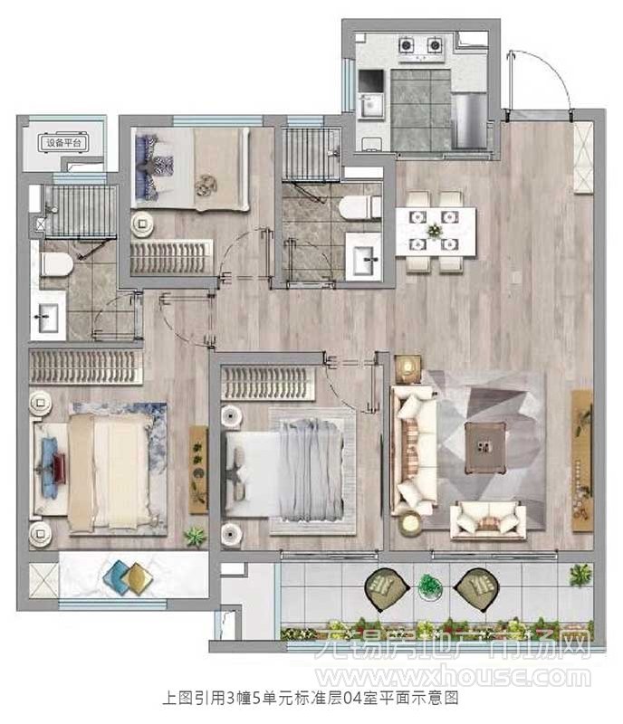 3室2厅2卫 建筑面积约:102.0㎡102㎡户型