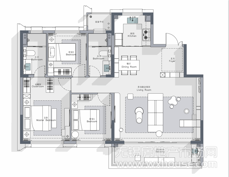 3室2厅2卫 建筑面积约:128.0㎡E户型棠涧