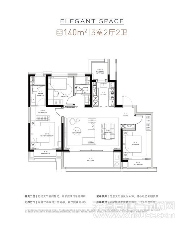 3室2厅2卫 建筑面积约:140.0㎡140㎡户型