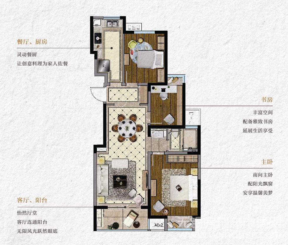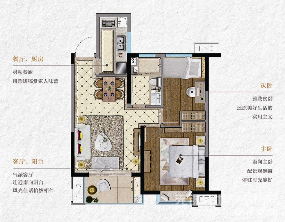 2室2厅1卫 建筑面积约:80.0㎡D户型