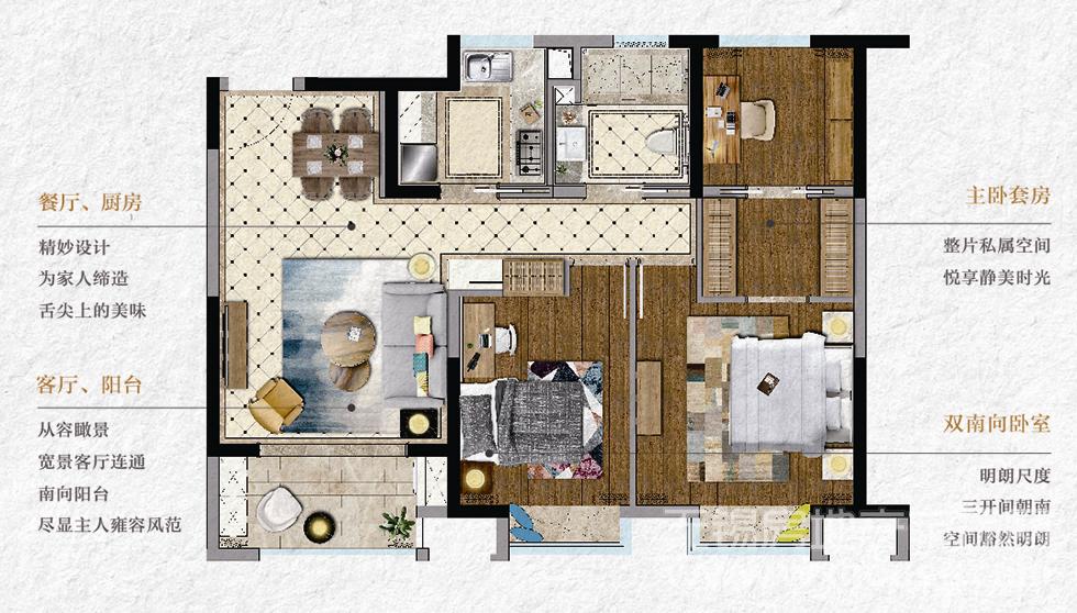 3室2厅1卫 建筑面积约:101.0㎡B户型