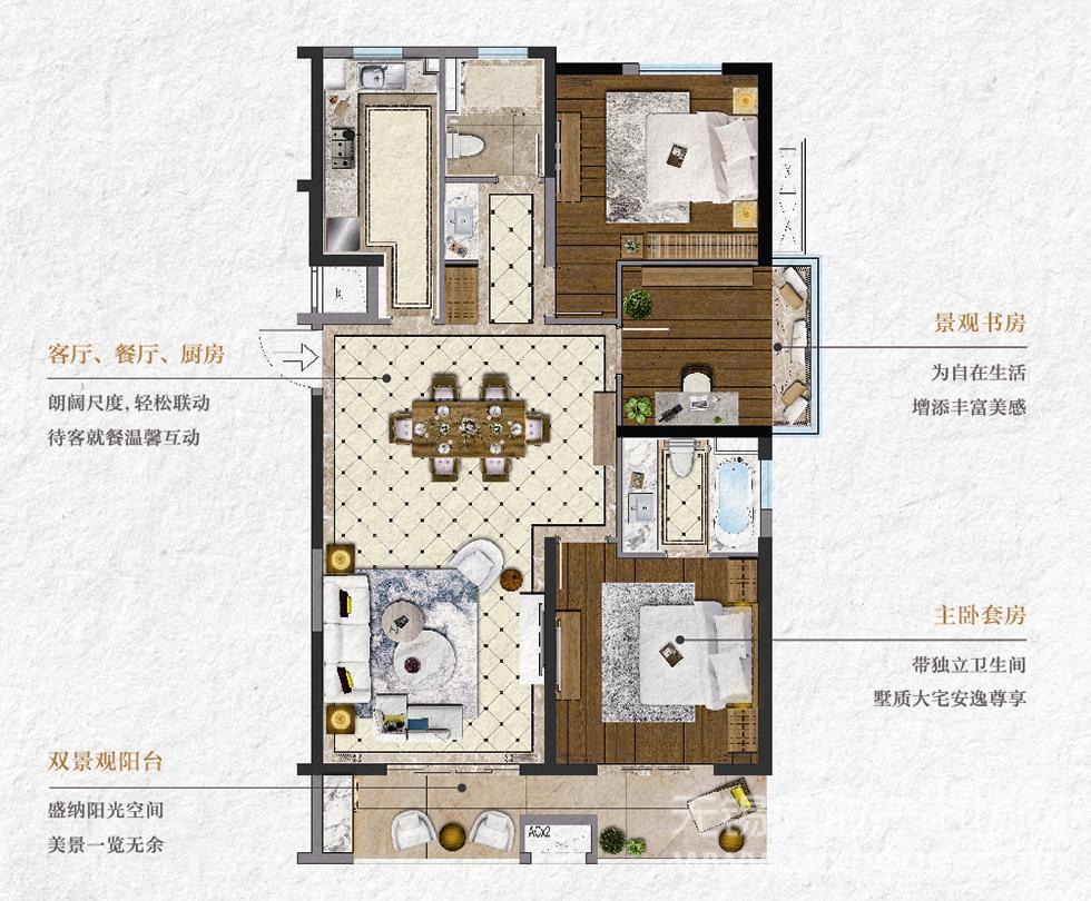 3室2厅2卫 建筑面积约:143.0㎡A户型