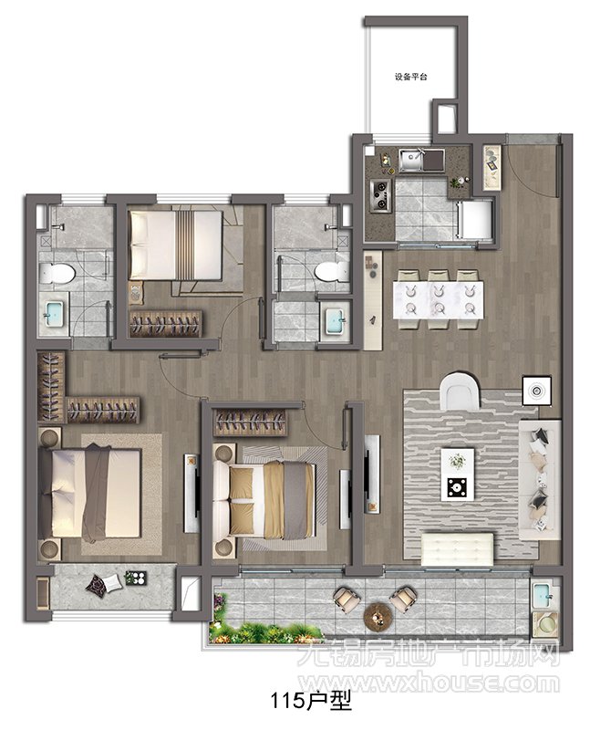 3室2厅2卫 建筑面积约:115.0㎡115㎡户型