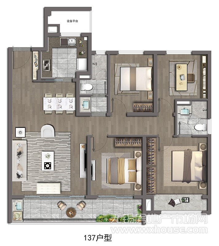 4室2厅2卫 建筑面积约:137.0㎡137㎡户型