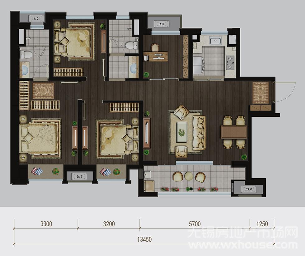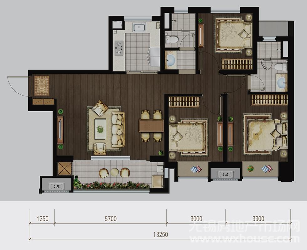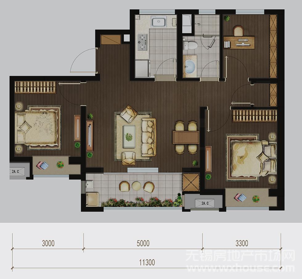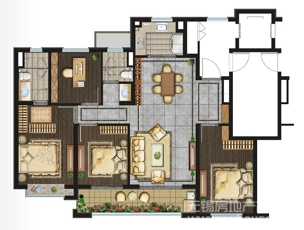 3室2厅2卫 建筑面积约:115.0㎡茗望户型