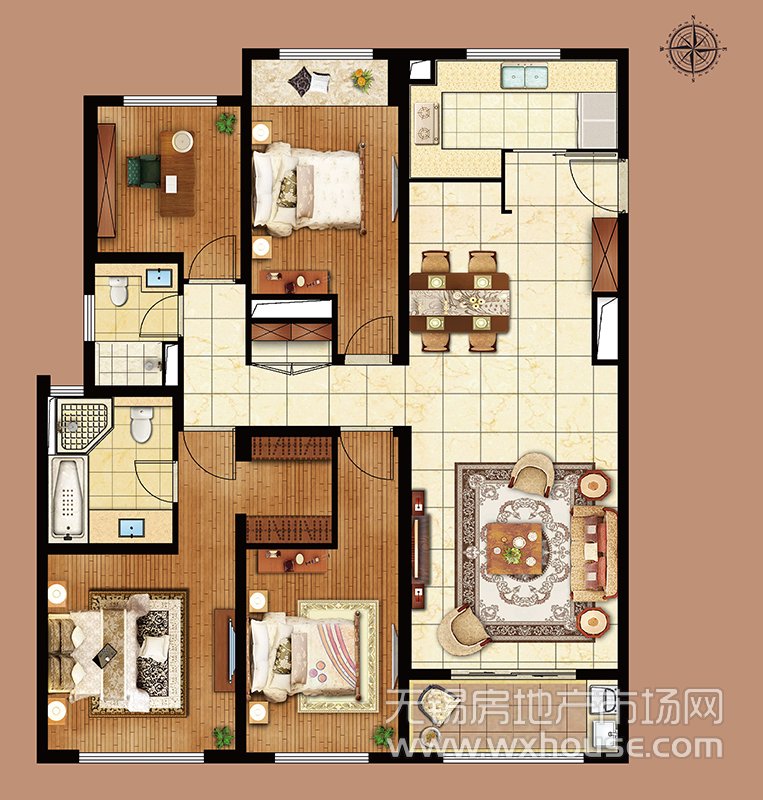 3室2厅2卫 建筑面积约:113.0㎡B户型