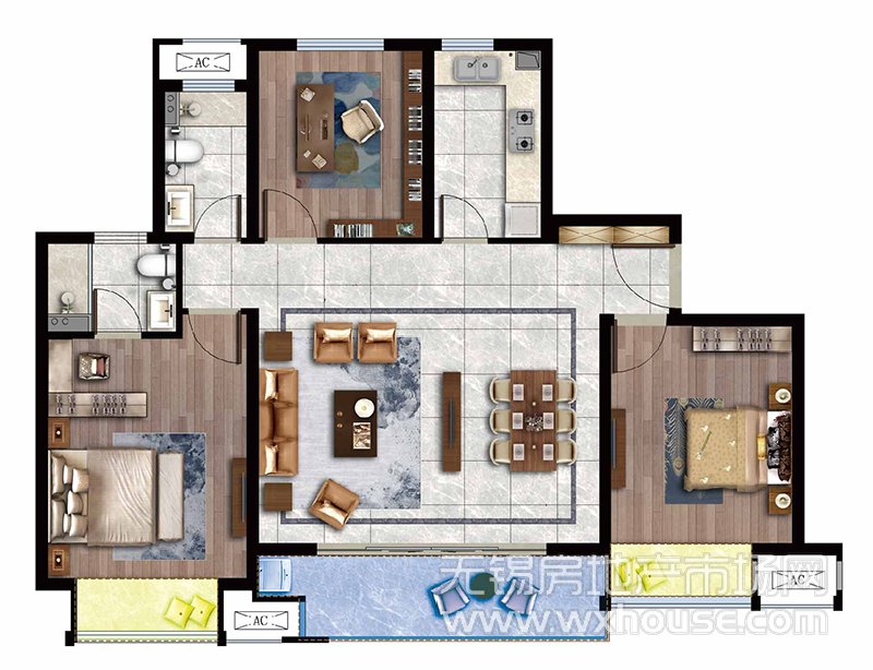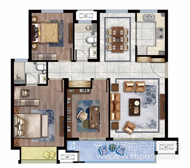 3室2厅2卫 建筑面积约:110.0㎡A户型
