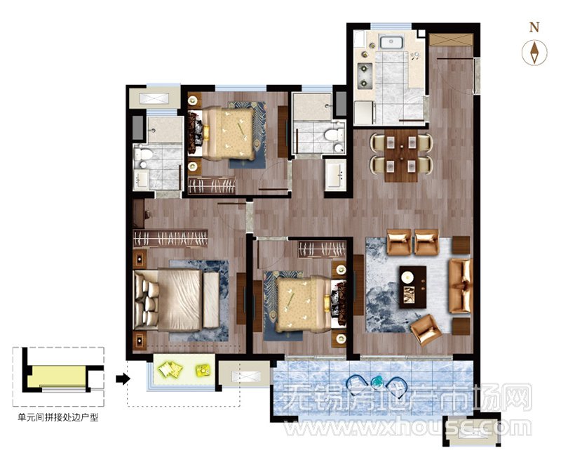 3室2厅2卫 建筑面积约:115.0㎡F户型