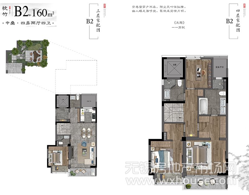 4室2厅4卫 建筑面积约:160.0㎡中叠B2户型
