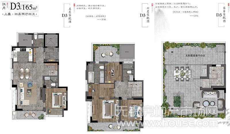 4室2厅4卫 建筑面积约:165.0㎡上叠D3户型