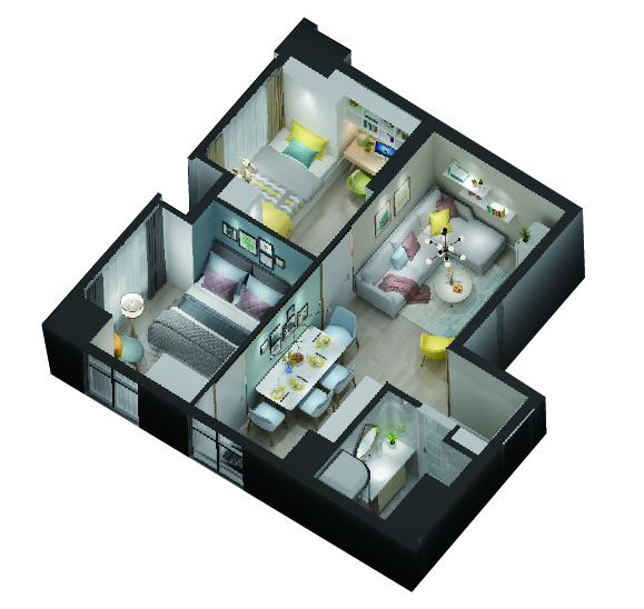 2室2厅1卫 建筑面积约:72.39㎡A/A1户型