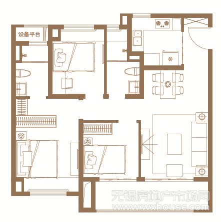 3室2厅2卫 建筑面积约:110.0㎡星光户型