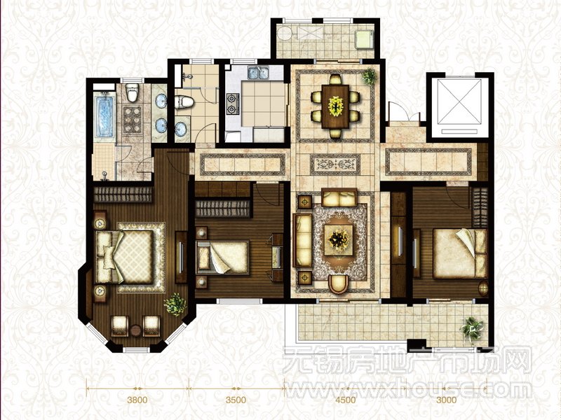 3室2厅2卫 建筑面积约:140.0㎡新悦户型