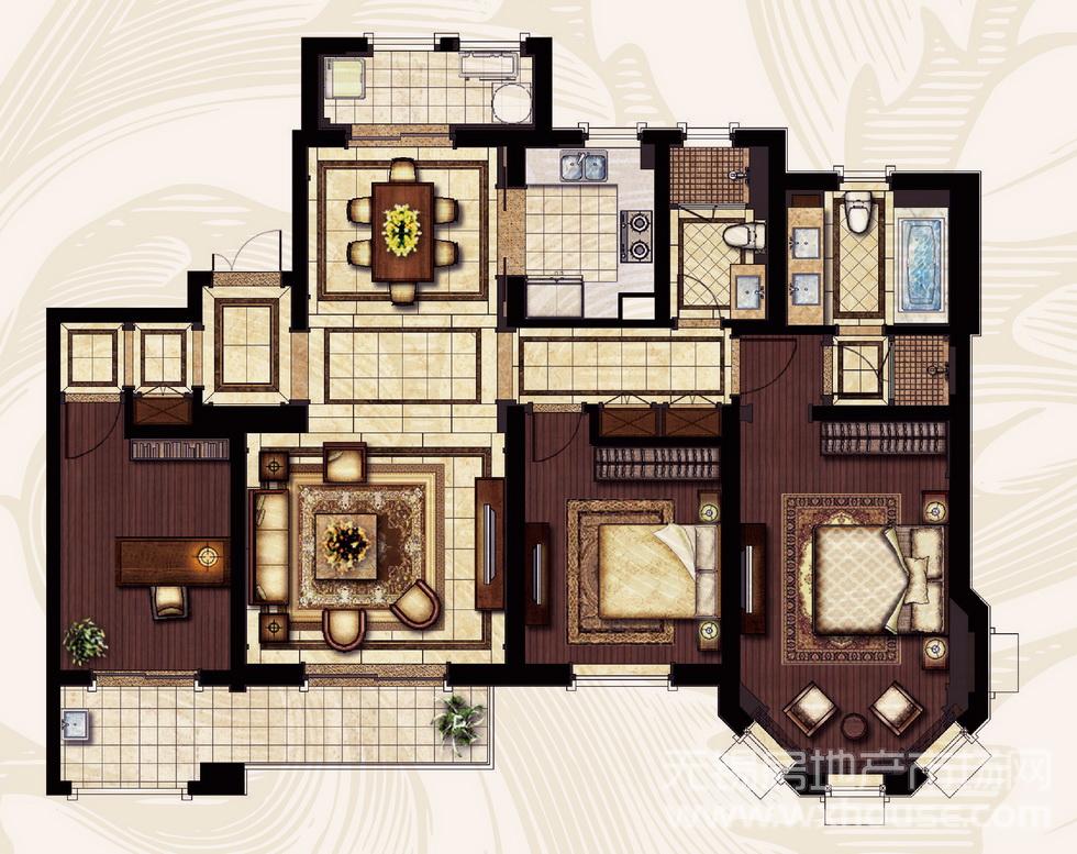 3室2厅2卫 建筑面积约:174.0㎡晶悦