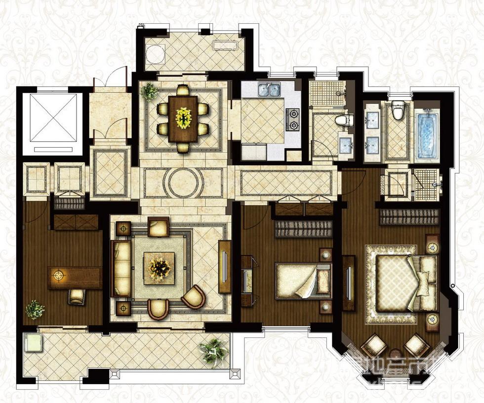 3室2厅2卫 建筑面积约:174.0㎡晶悦户型