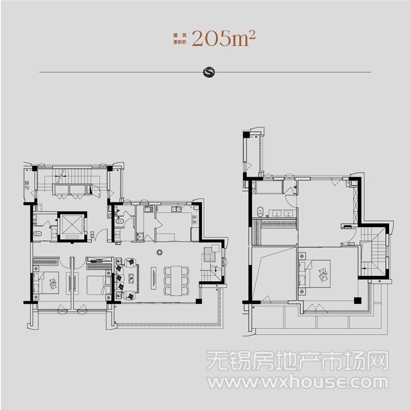 5室2厅4卫 建筑面积约:255.0㎡255㎡顶叠
